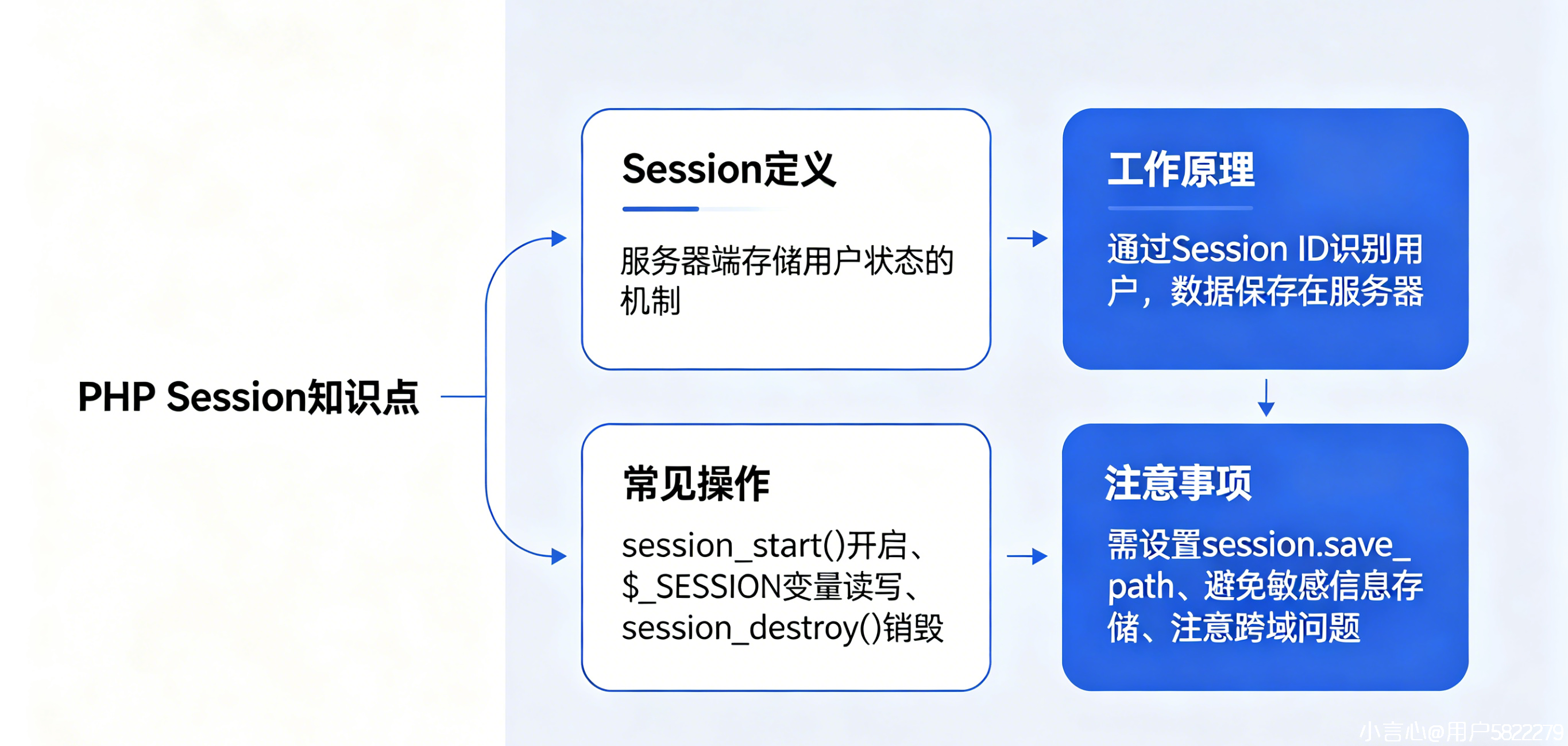 ​​服务器端存储:​​ PHP Session 数据默认存储在服务器上(文件、数据库、内存缓存等)。你设置的