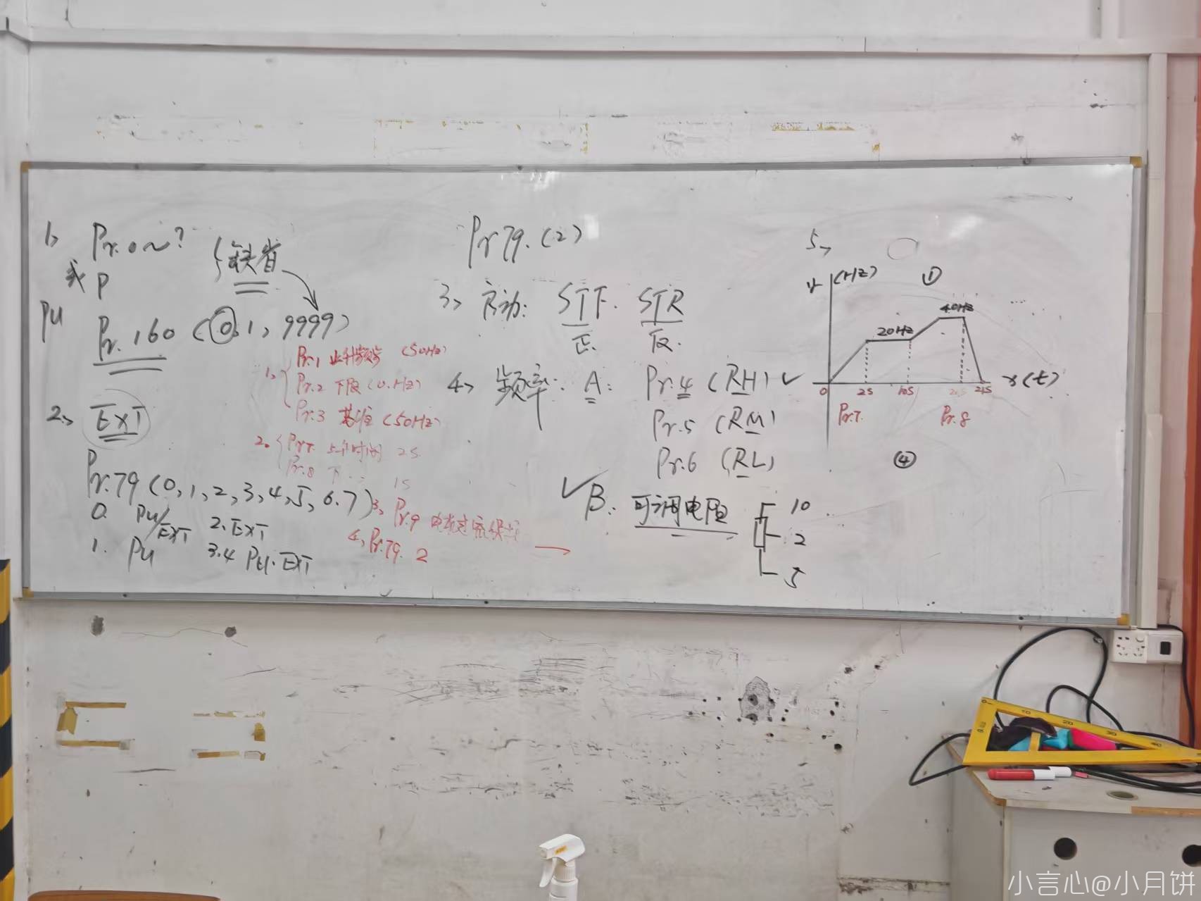 三种控制模式:PU(面板控制) EXT(线路控制) ..电脑控制(暂时不知道)